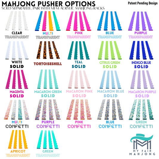 YES! These are THE customer favorite, best in market - patent pending racks you've heard about! With our full-sized acrylic racks, you can mix-and-match with our rainbow of pusher options, truly enabling you to create a personalized look and feel for your mahjong table. And don't forget to check out our popular wooden options and our mini racks as well!!