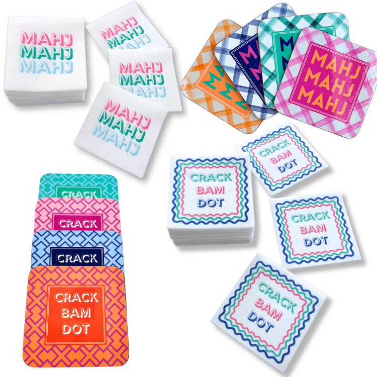 Mahjong Coasters, 4 Set | Gift or Prize | Green, Pink, Blue, Orange
