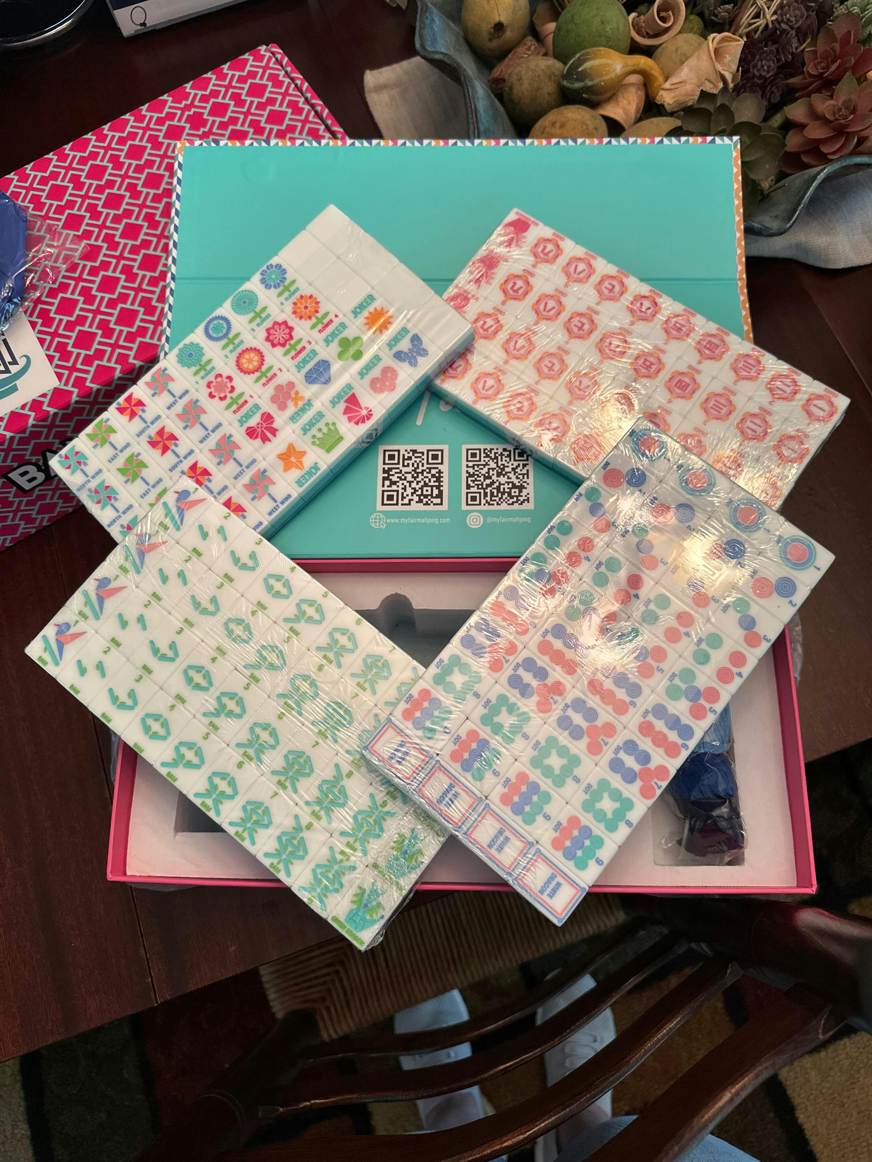 TILE SIZE/FIT: Fits My Fair Mahjong (taller/thinner) Destination Collection tiles (1.5" x 1" x 0.4"), My Fair Mahjong (shorter/chunkier) Crystal Collection tiles (1.25" x 0.9" x 0.7") and all tiles smaller. These racks are built to accommodate most tiles sold on the market.