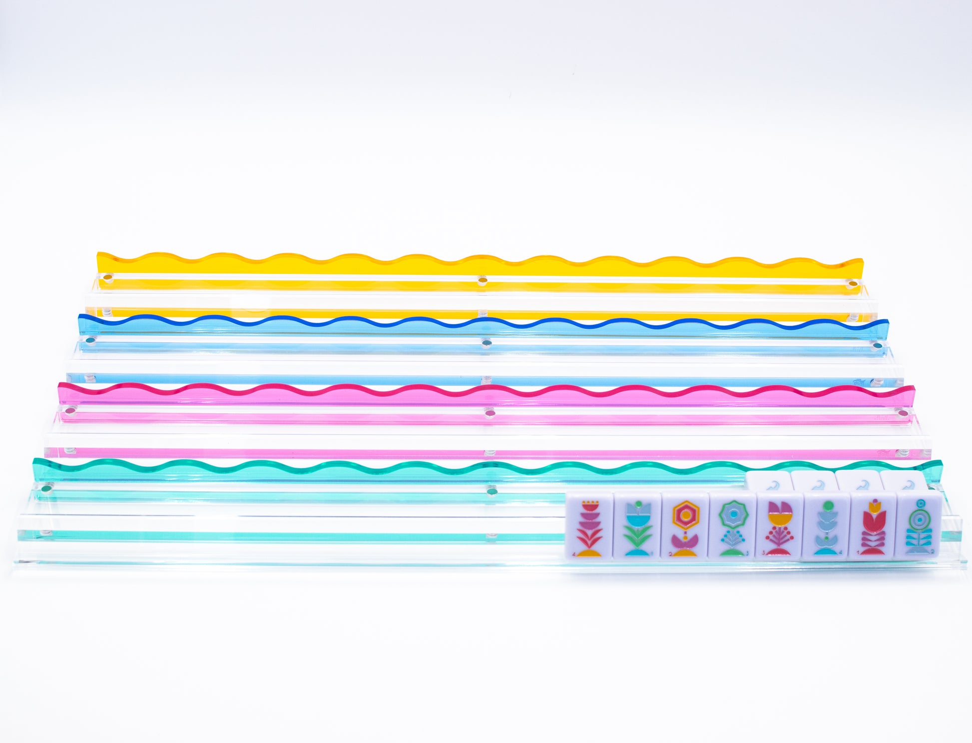 MAHJONG RACKS | Premium Acrylic | 4 Racks + 4 Rectangular Pushers