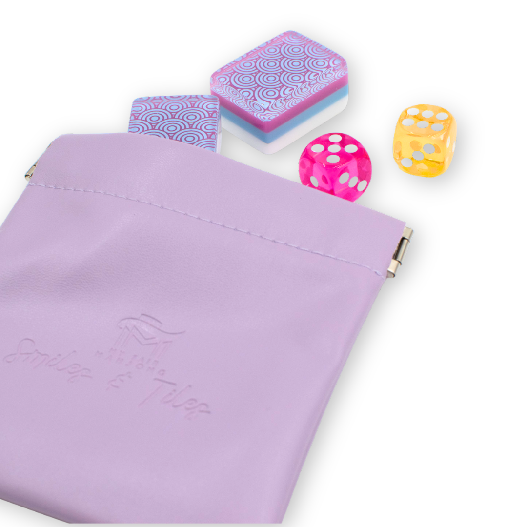 DESIGN ON OUTSIDE OF POUCH: Each pouch is subtly embossed with our My Fair Mahjong logo and our tag line "Smiles & Tiles"