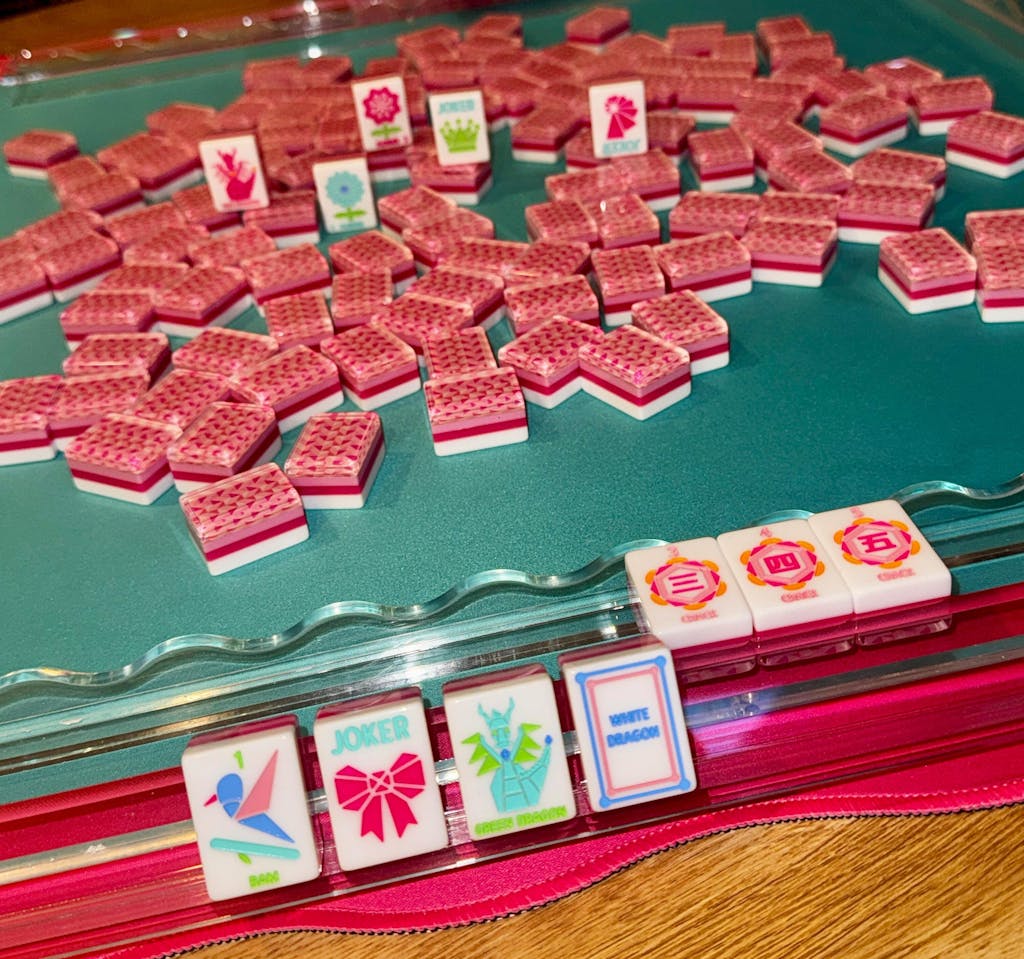 Crystal Prism Pink | Mahjong with Bold Angles and Vibrant Vibes | Clear Top with Colorful Pattern and Layers
